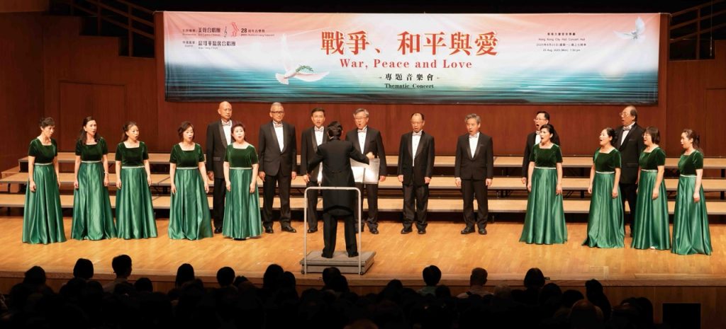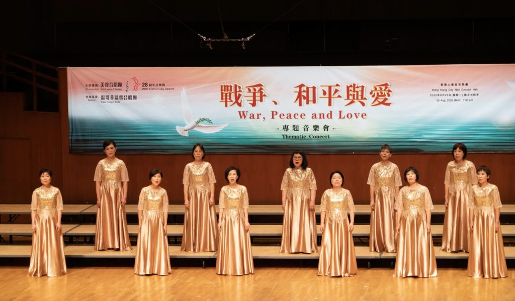 《戰爭、和平與愛》 港加合唱藝術交流音樂會 美聲合唱團28周年音樂會 演出日期:2025年8月25日 演出地點:香港大會堂音樂廳 主辦單位:美聲合唱團 指揮:張朝暉(香港) 特邀嘉賓:溫哥華溫馨合唱團 指揮:何念強(溫哥華) 演出片段 音樂會序言 2025 音樂家嘉賓賀詞 《和平的翅膀》創作手記 照片集 演出片段 1) 和平的翅膀 (張朝暉曲 張雁霄詞) (世界首演) 美聲合唱團 指揮: 張朝暉 2) 兵車行 (陳能濟曲 杜甫詞) 美聲合唱團 指揮: 張朝暉 3) 旗正飄飄 (混聲合唱) (黃自曲 韋瀚章詞)美聲合唱團 指揮: 張朝暉 4)Dona Nobis Pacem (混聲小合唱) (Mary Lynn Lightfoot)美聲合唱團指揮: 張朝暉 5) Introit & Kyrie, Requiem (混聲合唱) (Gabriel Faure)(進堂詠和垂憐經,)美聲合唱團 指揮: 張朝暉 6) 飛翔吧,和平鴿 (混聲合唱) (伊·杜納耶夫斯基曲 米·馬都索夫斯基詞)美聲合唱團指揮: 張朝暉 7) Nella Fantasia我的夢想 from The Mission(film) (混聲合唱) (Ennio Morricone)美聲合唱團指揮: 張朝暉 8)蒼茫大地 (混聲合唱) (陳永華曲 吳瑞卿詞)美聲合唱團指揮: 張朝暉 9) I Have a Dream我有一個夢 (Mary Donnelly) (女聲小組唱) 美聲合唱團 鋼琴伴奏:陶精晶 10) Let There be Peace on Earth (Sy Miller and Jill Jackson Miller) 美聲合唱團(香港),溫馨合唱團(加拿大) 指揮: 何念強 11)明天會更好 (混聲合唱) (羅大佑曲 李壽全詞 張朝暉編合唱)美聲合唱團 指揮: 張朝暉 12) 在太行山上 (混聲合唱) (冼星海曲 桂濤聲詞)美聲合唱團,溫馨合唱團 指揮: 何念強 音樂會序言 2025 p1_前言_戰爭、和平與愛的永恆追問 音樂家嘉賓賀詞 p2-Dr陳永華 p3_《以歌為橋,共築和平》 《和平的翅膀》創作手記 和平的翅膀-p17_《和平的翅膀》音樂介紹與分析 和平的翅膀-p16_歌詞創作手記_-以歌為翼《和平的翅膀》 照片集